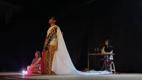 Dua pembawa acara membuka rangkaian acara Festival Nasional Wisran Hadi II yang diselenggarakan oleh mahasiswa Sastra Indonesia, Jumat (4/7/2025) (Genta Andalas/Tantri Pramudita)Keluarga Gareng dari drama “Penjual Bendera” yang kini sudah dikalahkan dengan pesaing luar negeri, Jumat (4/7/2025) (Genta Andalas/Nia Rahmayuni)Penonton tampak fokus menyimak penampilan kajian drama dalam Festival Wisran Hadi II, Jumat (4/7/2025) (Genta Andalas/Tantri Pramudita)Adegan dari pementasan drama “Nurani” dalam Festival Nasional Wisran Hadi II, Jumat (4/7/2025) (Genta Andalas/Nia Rahmayuni)Dua mahasiswa bertugas sebagai pengisi efek suara dalam pementasan drama, salah satunya memainkan suling untuk menciptakan suasana, Jumat (4/7/2025) (Genta Andalas/Tantri Pramudita)