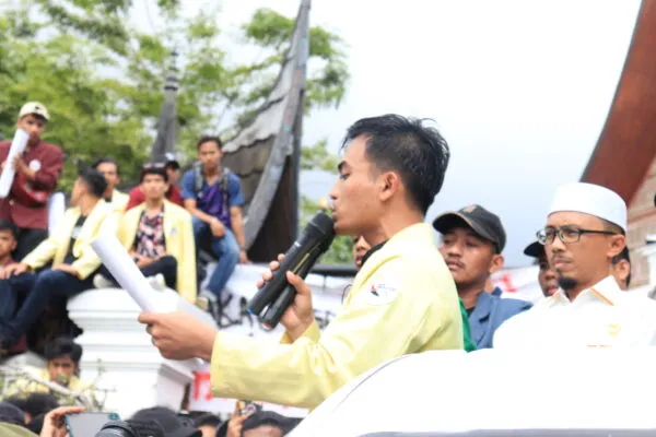 Pembacaan tuntunan aksi yang telah di tanda tangani bersama oleh perwakilan aliansi BEM-SB, Rabu (7/9/2022). (Genta Anadala/Fadhilah Lisma Sari)