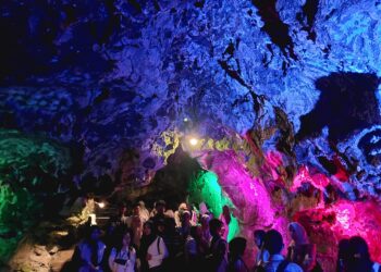 Dua orang pengunjung saat memasuki lokasi wisata Goa Kelelawar Padayo, yang berlokasi di Indarung, Kota Padang pada Kamis (27/6/2024) (Genta...